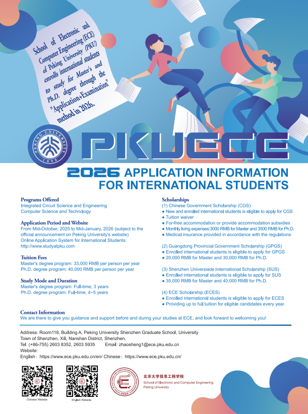 The International Excellent Young Scholars Forum of the School of Electronic and Computer Engineering of Peking University aims to build a platform for academic discussions and exchanges for leading talents and excellent young scholars in the field of information disciplines at home and abroad, and to respond to the future development concept of "AI traction and innovation integration" of Peking University Shenzhen Graduate School, through academic reports and seminars. The forum will bring together outstanding young talents in the interdisciplinary field of information science at home and abroad, promote the exchange of outstanding research results at the international frontier, implement the new talent strategy of the School, introduce leading talents and outstanding young talents in key fields to the Shenzhen Graduate School, and also contribute to attracting more young talents in science and technology to the Guangdong-Hong Kong-Macao Greater Bay Area.