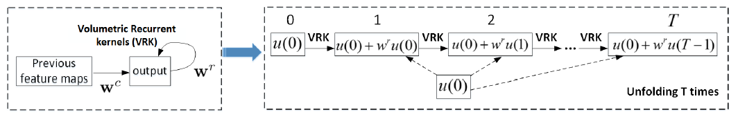 该成果的主要贡献如下:首先,针对视频的时空特性,提出了深度交替神经网络(DANN: Deep Alternative Neural Network),DANN结合卷积神经网络CNN与循环神经网络RNN的优势,在每个卷积层后增加一个特殊设计的循环层。相对于已有的深度网络,DANN交替层的特殊处理可利用较少的层数提取较丰富的低层局部特征的上下文信息;其次,针对不同尺度的视频数据,设计了自适应的视频片段分割策略,解决了现有方法使用预定义的长度、容易破坏视频自身的场景和语义分段的问题;第三,提出了一个全新的时空金字塔池化层,可将不同尺寸的视频所产生的不同尺度的特征图归一为统一的维度,从而解决了全连接层需要固定尺寸特征图的难点。