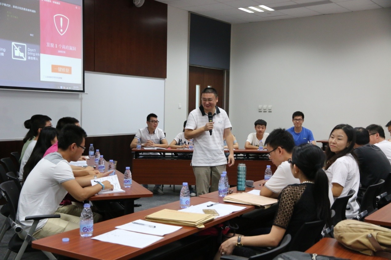 个专业有大致了解后,组织者先引导营员移步汇丰大楼一楼左侧楼梯拍大合照,然后再分别安排微电子专业和计算机专业的营员到不同的教室,听各专业老师对自己具体的研究方向进行详细的介绍。