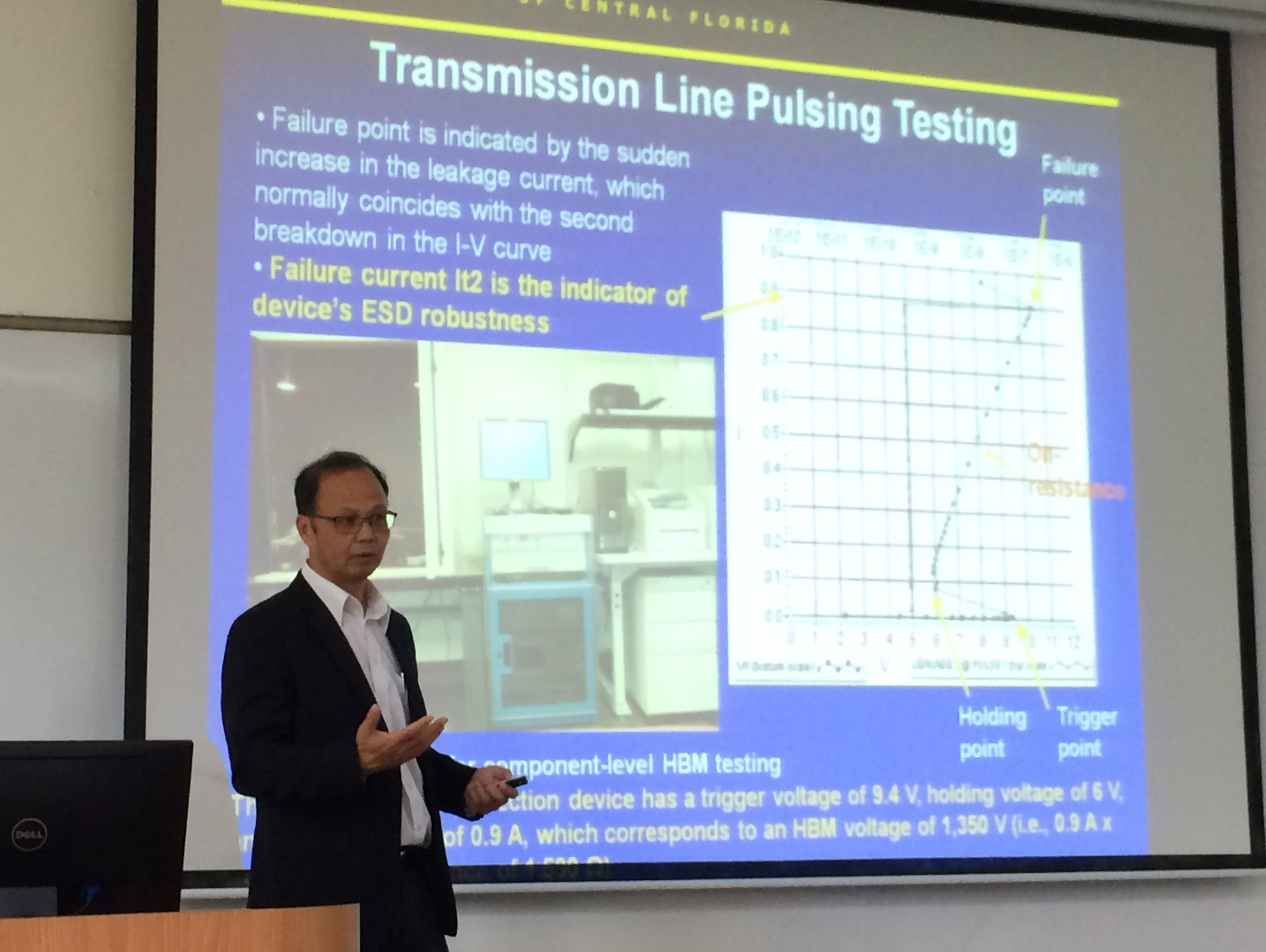 林信南副教授的邀请,中佛罗里达大学的刘俊杰教授就微电子领域的静电保护问题为信息pc28开奖预测