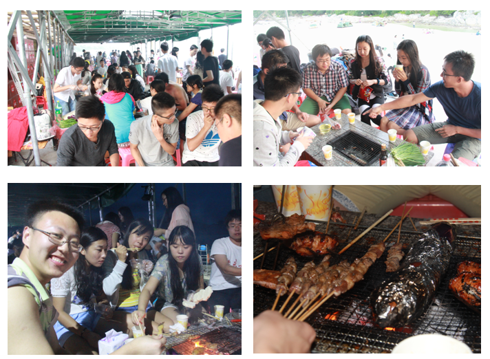 傍晚时分,玩闹了一整天的同学们迫不及待的开始领着早上准备好了的食材、调料,开始了同学们期待已久的烧烤大餐,一时间烟雾缭绕,同学们各显烧烤手艺,当天,王文敏院长也加入了新生出游的行列,在烧烤餐中亲切的与同学们交谈,深受同学们欢迎。