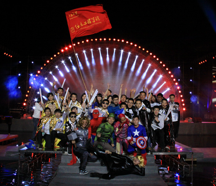 本次游行的创意来自于电影《复仇者联盟》,方阵由包括王文敏院长、卢志明老师在内的近40人组成。18名身披黑色或金色斗篷的神秘人物以及11名身着各色闪亮短裙的女生簇拥着钢铁侠、蜘蛛侠、绿巨人、超人、雷神、黑寡妇6个经典形象。队伍表演了一段欢乐俏皮的舞蹈和T台秀,赢得了阵阵掌声和欢呼。