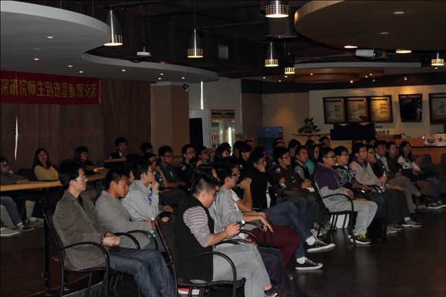 2013年11月20日下午,13级计算机应用技术专业硕士同学们前往迅雷网络技术有限公司总部(深圳)参观学习。活动主要目的是为了让同学们能够亲身体验和了解互联网公司的pc28开奖预测、工作氛围、技术要求,近距离接触到团队的日常工作,使学生们在走出“象牙塔”之前有亲身直观的体验,此次活动由雷凯老师和李险峰老师带领。