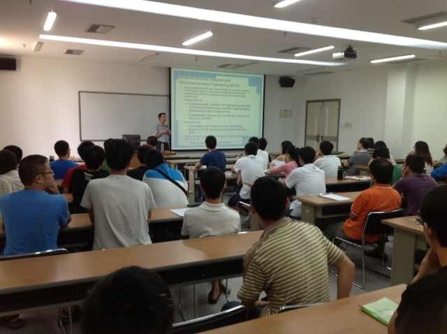 Ritz博士分别介绍了UOW的基本情况、他所在的研究团队和参与的研究领域、分享了他们的最新研究成果:基于集成麦克风阵列(声学矢量传感器和B格式麦克风)的空间多声源盲分离技术,其研究结果显示,他们所提出的方法能够有效地实现盲源分离,性能优于其他技术。多声源盲分离技术是一个尚未解决的具有众多应用的技术。Ritz博士对解决该问题的思路给同学们进行了详细的阐述,从问题的解决方法出发,建立数学模型,进行理论推导和实验结果评估(主观与客观评价),最终得到研究的结果。Ritz博士的分享给同学们在理论研究和科研方法提供了很好的借鉴。