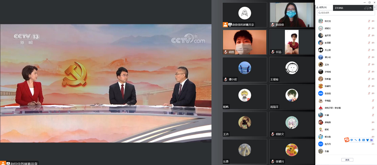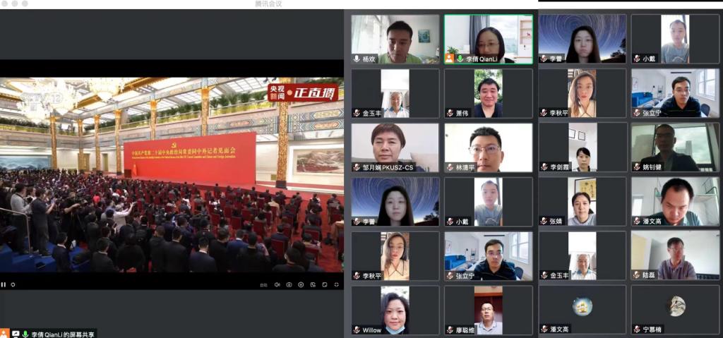 教工与学生支部党员共计43人在线上/线下集中观看第二十届中共中央政治局常委同中外记者见面会直播。线上会议由教工支部书记李倩和2022微电子学生支部书记赵佳佳主持。