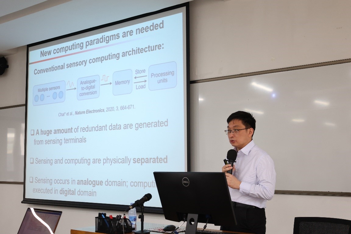 2023年4月17日下午14时,由北京大学深圳研究生院主办的“启智创芯”科技系列论坛第三期在线下C-203成功举办。本期邀请到香港理工大学理pc28开奖预测 副院长柴扬教授为大家带来主题为“In-sensor computing for artificial vision”的报告。本次讲座由pc28开奖预测 副院长杨玉超教授主持,报告现场学术气氛浓厚,吸引了来自本院多位老师、同学的热情参与和积极讨论。