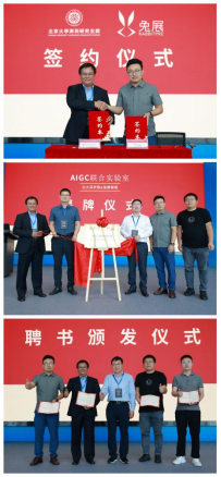 董少灵表示,兔展智能成立于2014年,致力于打造中国AIGC内容引擎和营销云核心平台。深圳市南山区是世界级的创新土壤,北京大学是解决世界级难题、培养世界级人才的高等学府,兔展是需要解决世界巅峰级产业问题的公司。联合实验室将致力于研究AI生产内容领域,更加高效地传递信息。他作为深研院校友,对北京大学的老师们以及深圳市的支持表示感谢,希望未来双方的深入合作能够推动科技创新,为社会作出贡献。袁粒表示,兔展智能AIGC联合实验室致力于研究超越Stable Diffusion的下一代CV&多模态大模型,实现模型层面加速生成,极大提高生产效率,推动智能科技在各个领域的深度融合与创新。
