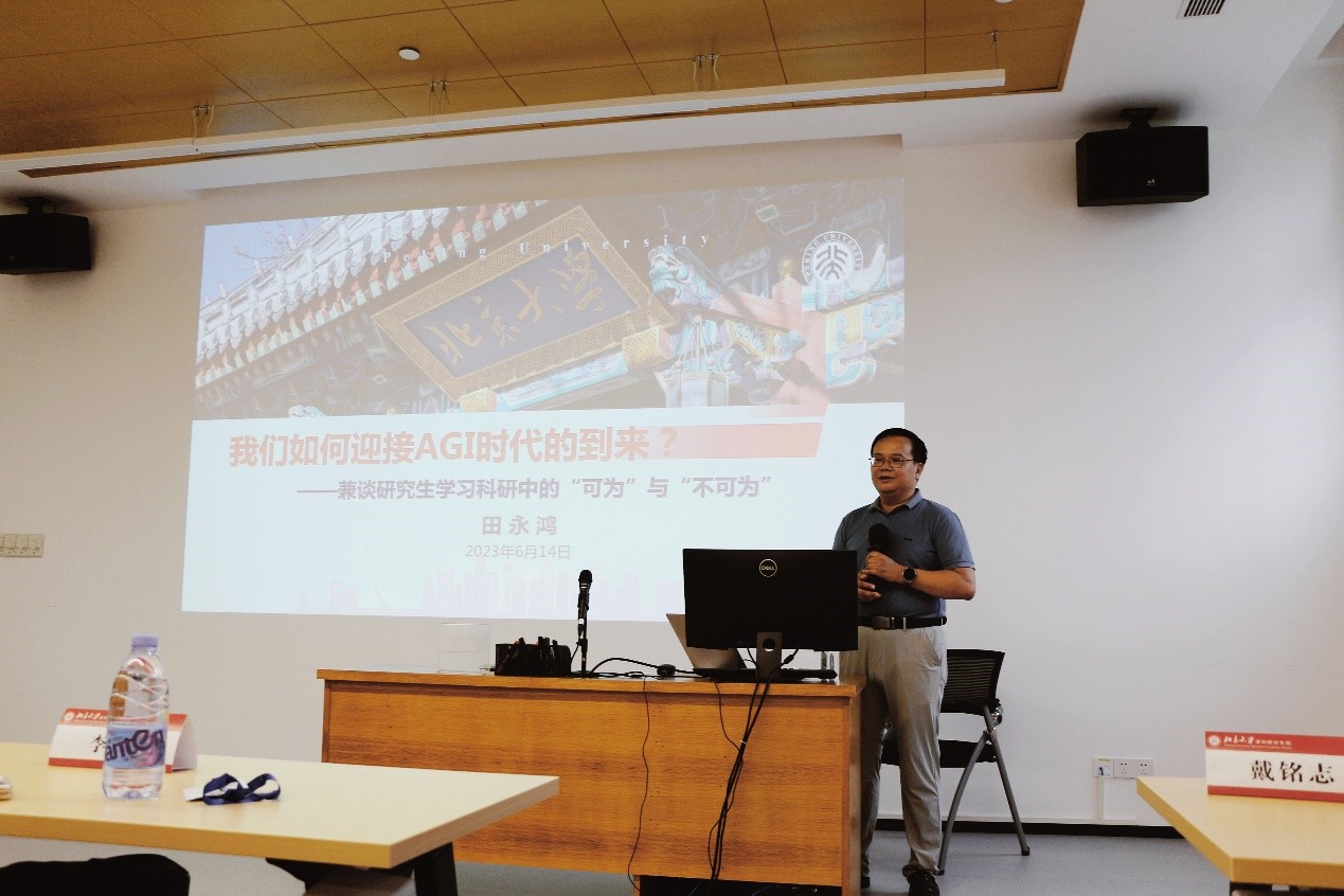 座谈会上,田永鸿院长首先以“我们如何迎接AGI时代的到来”为主题,介绍了AGI时代即将到来,期待每一位同学能够把握现在、拥抱明天,争取做AGI时代的“劳心者”。田院长同时分析了研究生学习、科研以及生活中经常面临的问题,提出了一系列“可为”与“不可为”的建议,教会同学们如何平衡科研与生活、处理焦虑和迷茫。接着,田院长分析了如何面向未来研究以及如何进行职业发展规划,希望每位同学都能做各自研究领域的领头羊。
