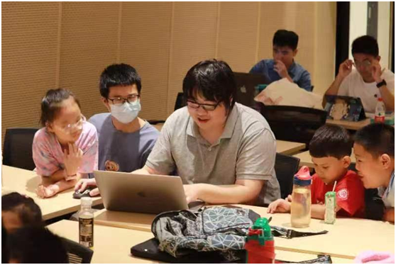 夏令营同学在教室门口进行签到