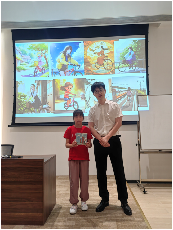 课程最后,现场对学员们创作的AI图画进行了评选。李倩老师和张健老师为最受欢迎的画作进行颁奖并送上了精美的北大卡套作为奖励。课堂发言最积极的学员也同样得到了奖励。