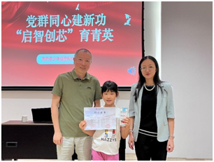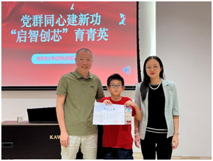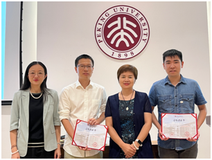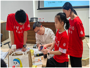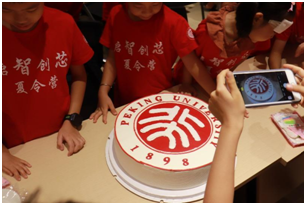受邀嘉宾为廖老师颁发了一份特别定制的荣誉证书,以表彰他在夏令营期间的辛勤付出和卓越指导。紧接着每位完成课程的学员都依次上台领取精美的结业证书和特别准备的纪念礼物——带有北大logo的马克笔。他们在收到证书时脸上洋溢着满足和自豪的笑容,并充分感受到了自己在夏令营中的进步和成长。随后,今天的主讲老师廖老师上台,为今天实验表现最优秀的四位学员颁发了特别礼物。最后,学员们一起分享了带有北大logo的结营蛋糕,在欢声笑语中共同回顾夏令营的精彩瞬间。