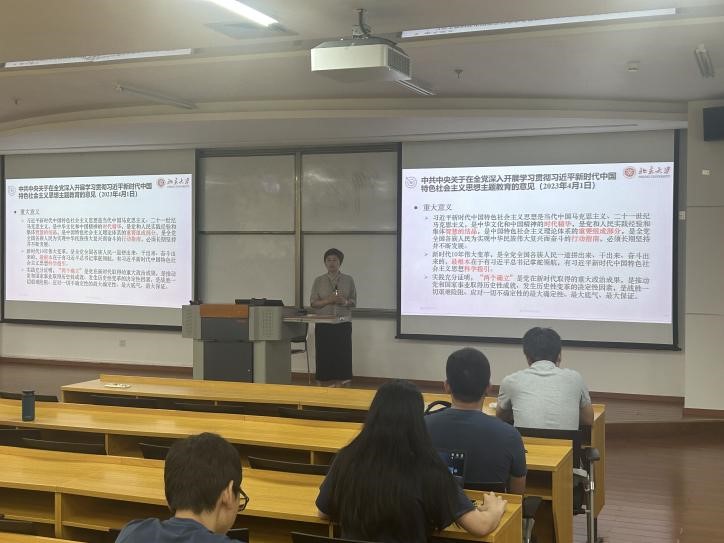 会议邀请了北京大学深圳研究生院党委副书记邹月娴教授进行主题教育领学。邹书记详细解读了中共中央关于在全党深入开展学习贯彻习近平新时代中国特色社会主义思想主题教育的重大意义。强调了两个确立、两个维护、四个意识和四个自信的重要性。
