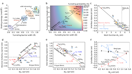这项研究基于第一性原理提出利用氢键相互作用本质上克服固有的范德华间隙,并讨论了在各种2D半导体中实现良好氢键接触的通用设计理念。鉴于氢键所具备的类似于范德华力的洁净界面特性,且具有更强的电子态耦合能力,氢键接触能够实现接近量子极限的超低接触电阻。此外,2D材料的表面工程赋予了氢键接触较高的设计灵活性,能够使金半接触同时逼近修正的肖特基-莫特极限。理论预测优异的氢键接触可以为各种新型高迁移率2D半导体(如氮化物、氧化物、卤化物、硫族化合物等)提供延续摩尔定律所需的电接触。这项研究成果将为进一步探索2D晶体管的性能极限提供理论指导,并为从高性能晶体管到量子器件的广泛应用提供了一种设计理想金半接触的方法,从而加速这个令人兴奋且迅速发展的领域的进步。