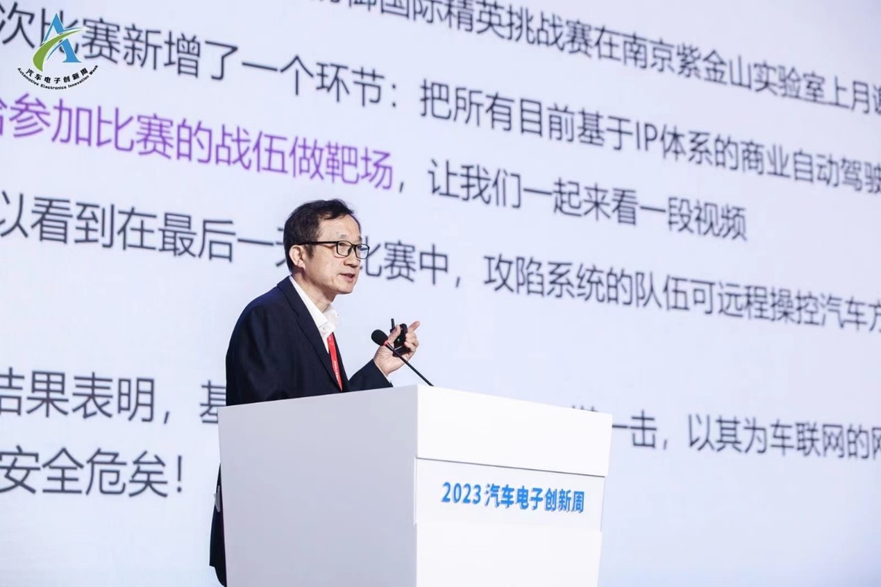 李挥教授的演讲主题为《人类网络空间命运共同体架构体系MIN及在智能网联汽车的应用》。他指出,IP网络三大致命缺陷,一是网络空间被独家垄断,二是没有安全基因事故层出不穷,三是架构僵化演进升级成本巨大。