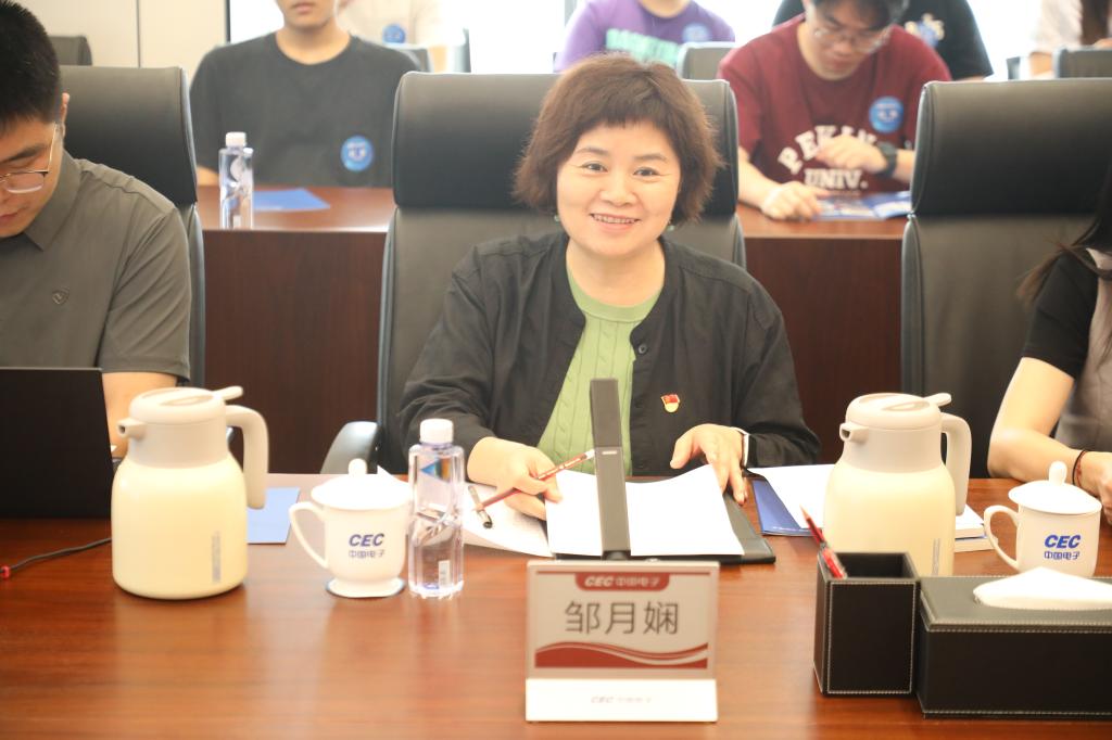 北京大学深圳研究生院党委副书记邹月娴在交流环节中表示,此次是北京大学深圳研究生院师生首次共同走进中国电子,进行交流访问,她期望这能成为校企合作的新起点,未来双方将在产学研方面加强合作。中国电子的党建工作负责人向师生们介绍了集团的党建工作与人才发展情况,双方围绕党建共建、校企合作、人才培养、科研协同等方面展开了深入的交流探讨。