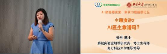 鹏城实验室的张彤博士带来题为《AI医生靠谱吗?》的演讲。她首先介绍了AI的广泛应用,展示了AI医生的发展历程,分析了人工智能在医疗领域的潜力与挑战。她表示鹏城实验室计划开发鹏城·脑海大模型,打造国内首个自主可控、安全可控、开源开放且应用驱动的自然语言预训练大模型底座。目前,鹏程云脑已应用于“中国算力网 - 智算网络”,并在医学影像报告生成中表现优异。