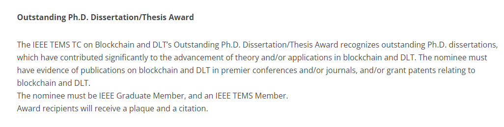 具体信息详见奖项IEEE官网://www.ieee-tems.org/tc-blockchain-dlt-awards/