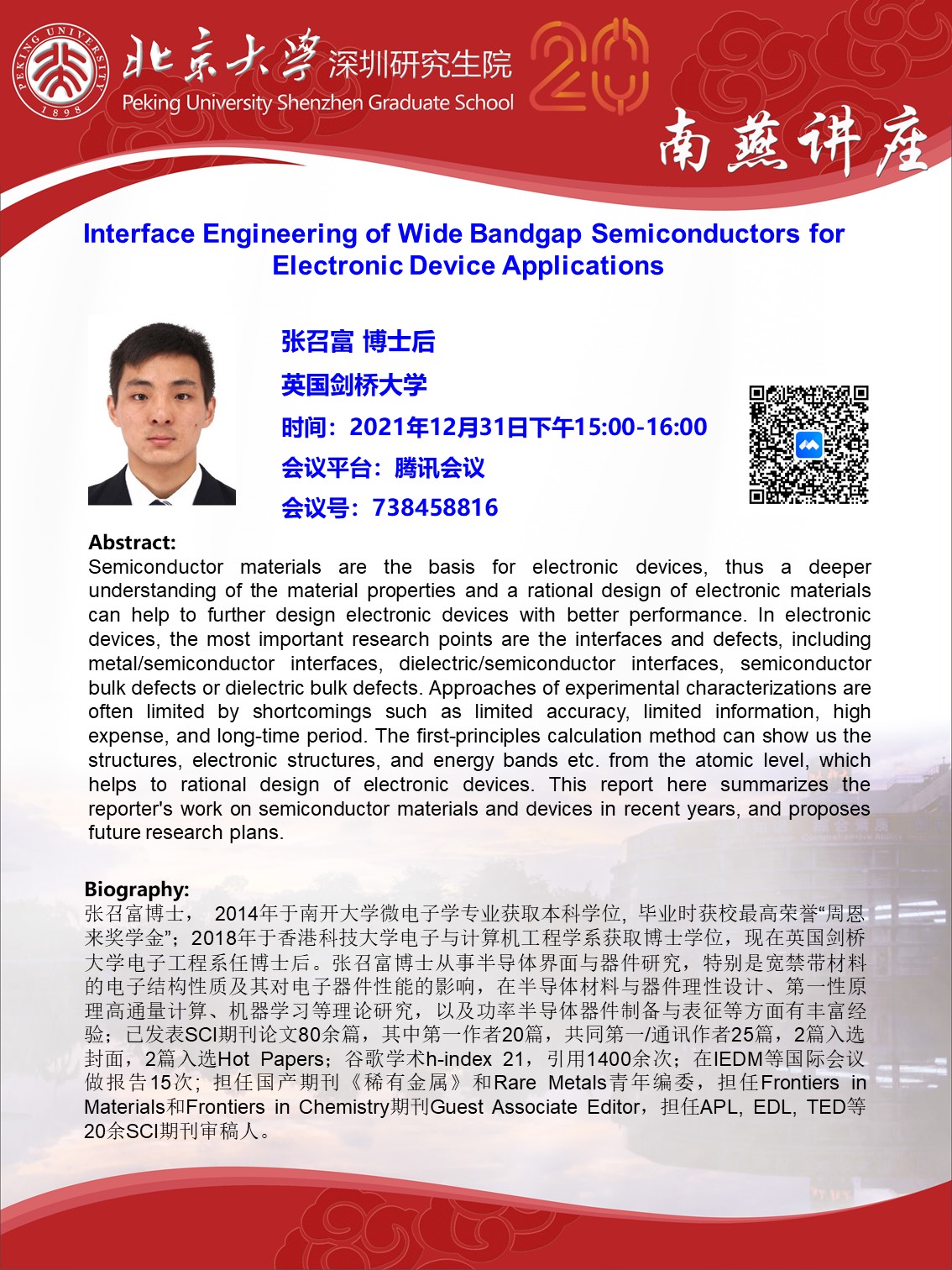 【学术讲座】张召富博士:Interface Engineering of Wide Bandgap Semiconductors for Electronic Device Applications