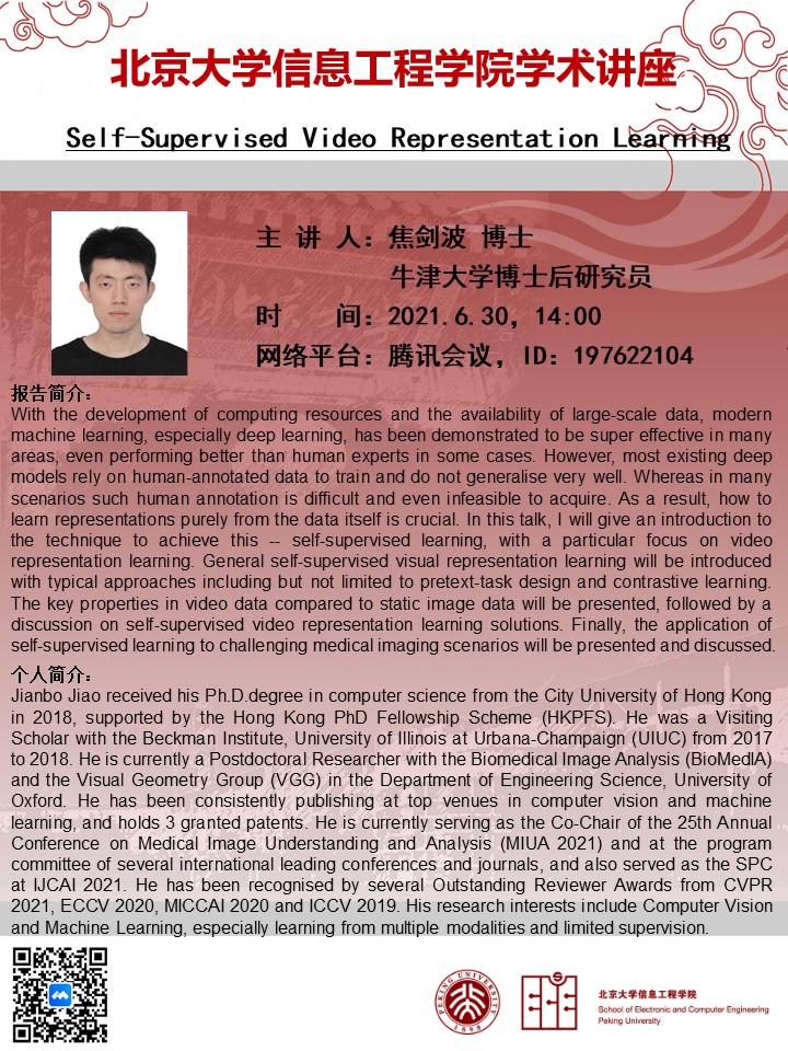 【学术讲座】焦剑波博士(牛津大学):Self-Supervised Video Representation Learning