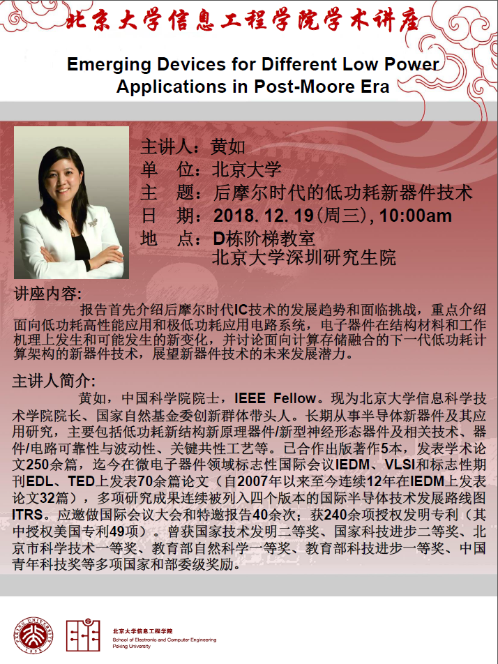 【学术讲座】黄如院士:后摩尔时代的低功耗新器件技术