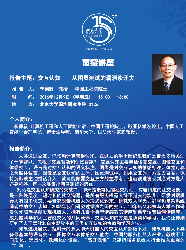 【学术讲座】李德毅 院士:交互认知-从图灵测试的漏洞谈开去