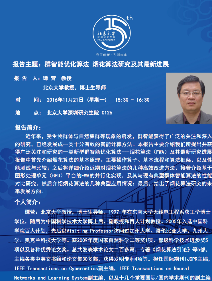 【学术讲座】谭营 教授:群智能优化算法-烟花算法研究及其最新进展