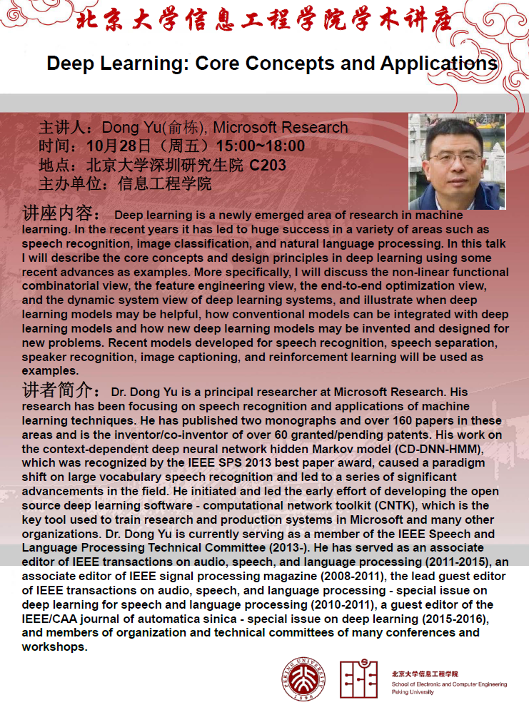 【学术讲座】俞栋博士:Deep Learning: Core Concepts and Applications