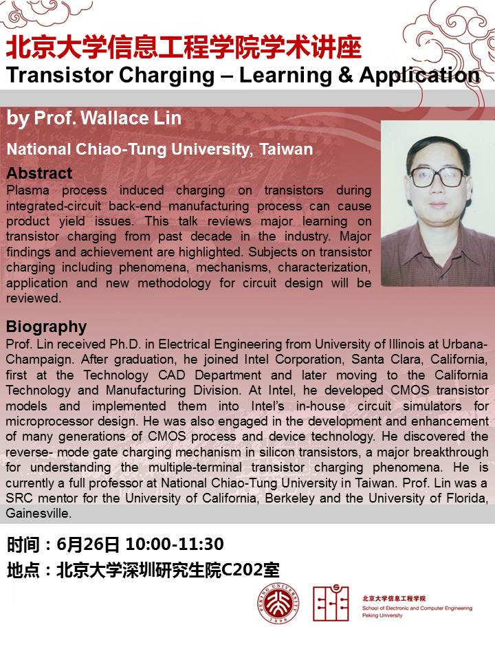 【学术讲座】Prof.Lin Wallace(台湾国立交通大学):Transistor Charging – Learning & Application