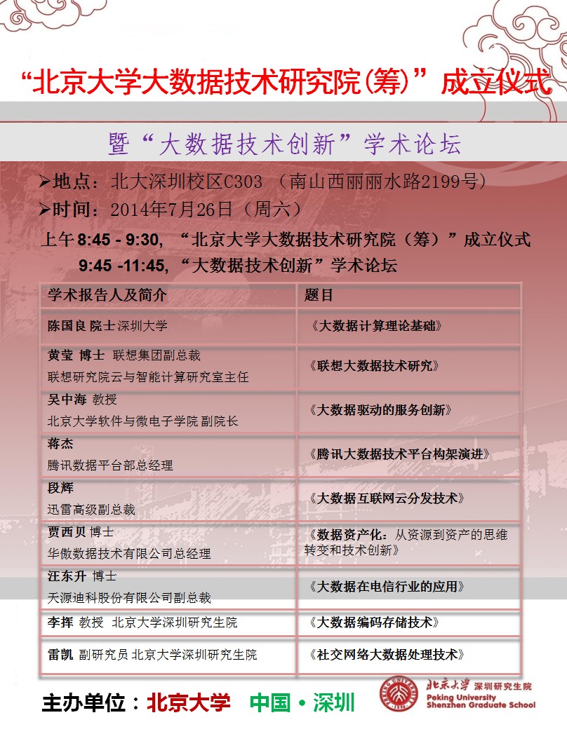 “北京大学大数据技术研究院(筹)”成立仪式,暨“大数据技术创新”学术论坛