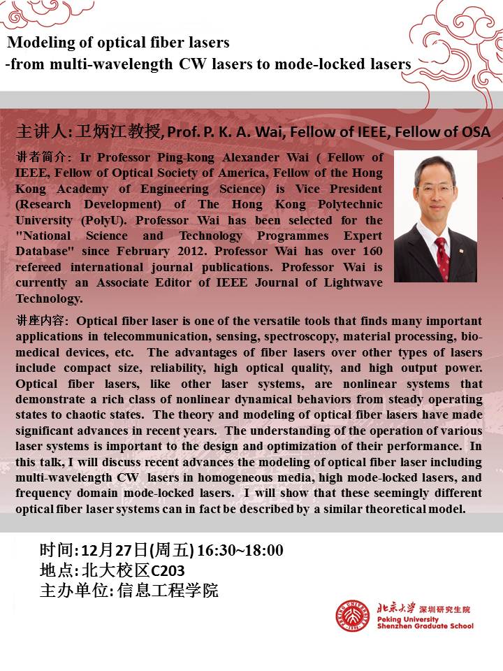 【学术讲座】卫炳江教授:Modeling of optical fiber lasers -from multi-wavelength CW lasers to mode-locked lasers