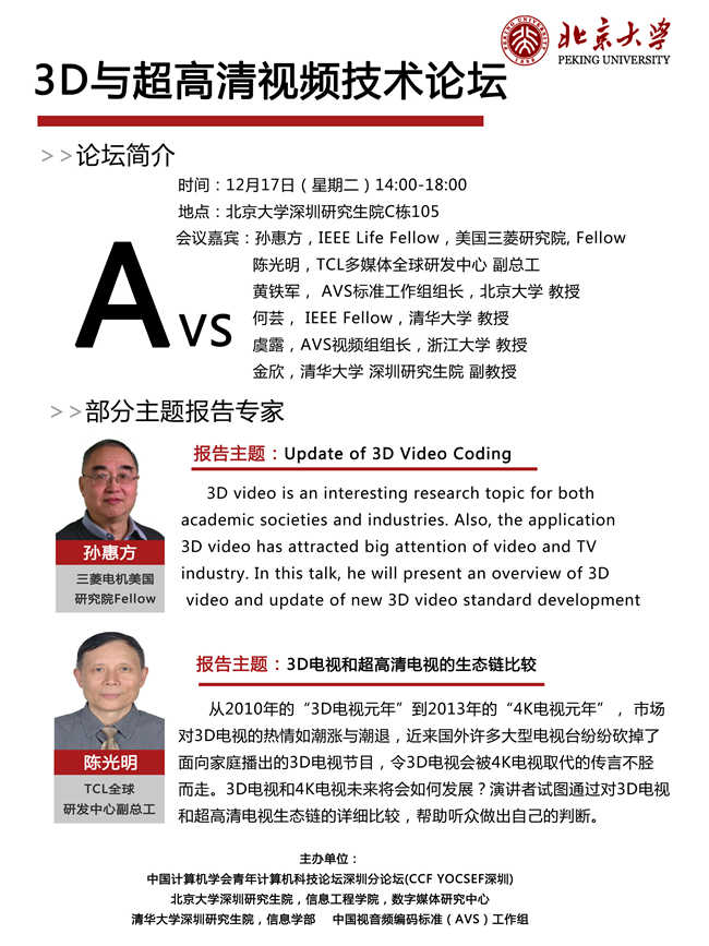 3D与超高清视频技术论坛议程