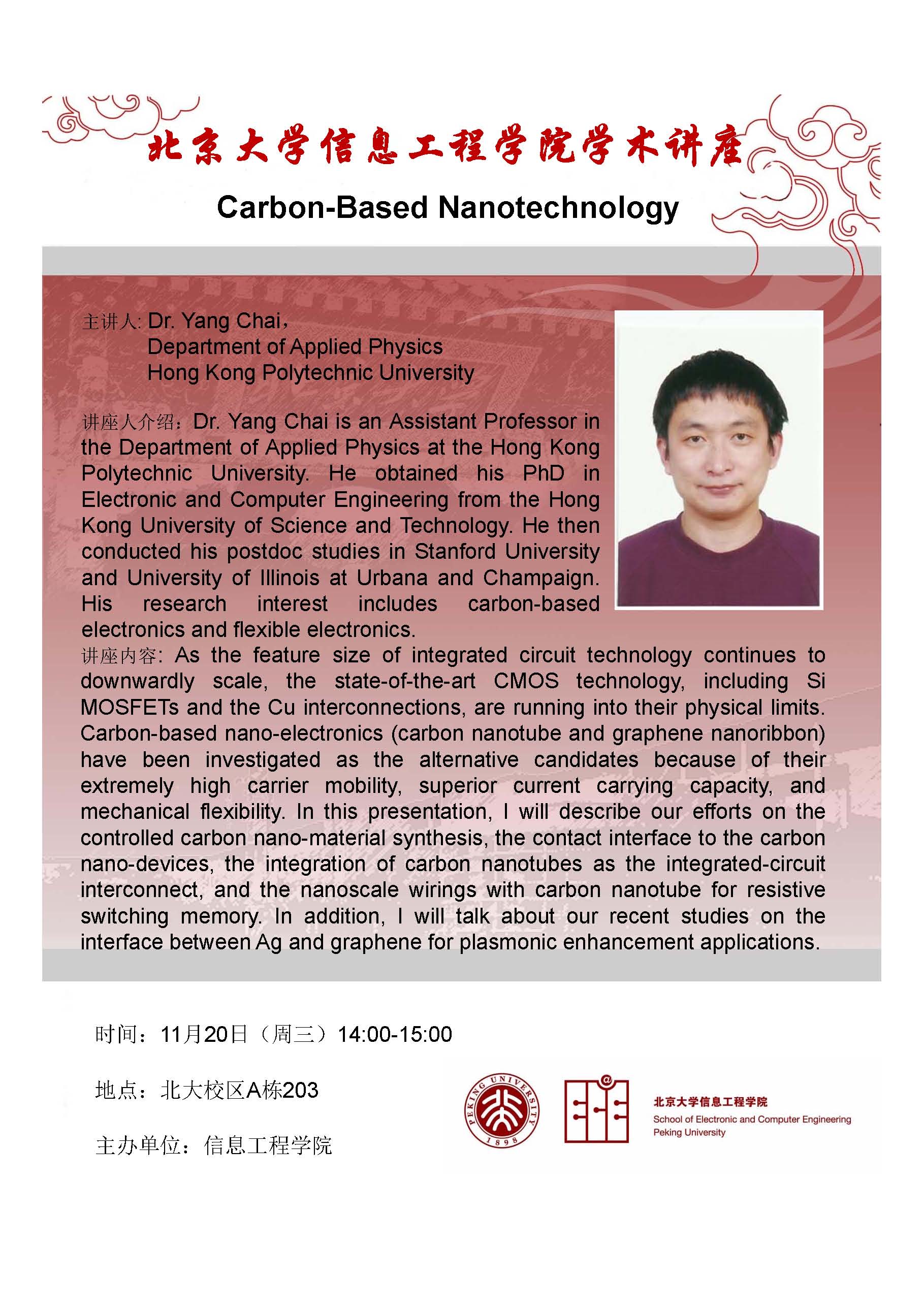 【学术讲座】Dr. Yang Chai(Hong Kong Polytechnic University):Carbon-Based Nanotechnology