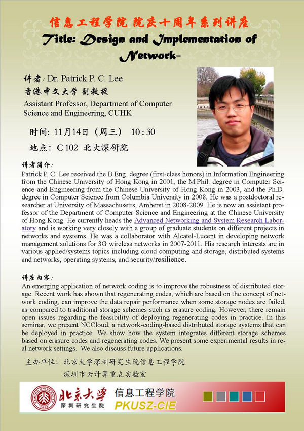 【pc28开奖预测 院庆十周年系列讲座】Dr.Patrick P.C.Lee:Design and Implementation of Network