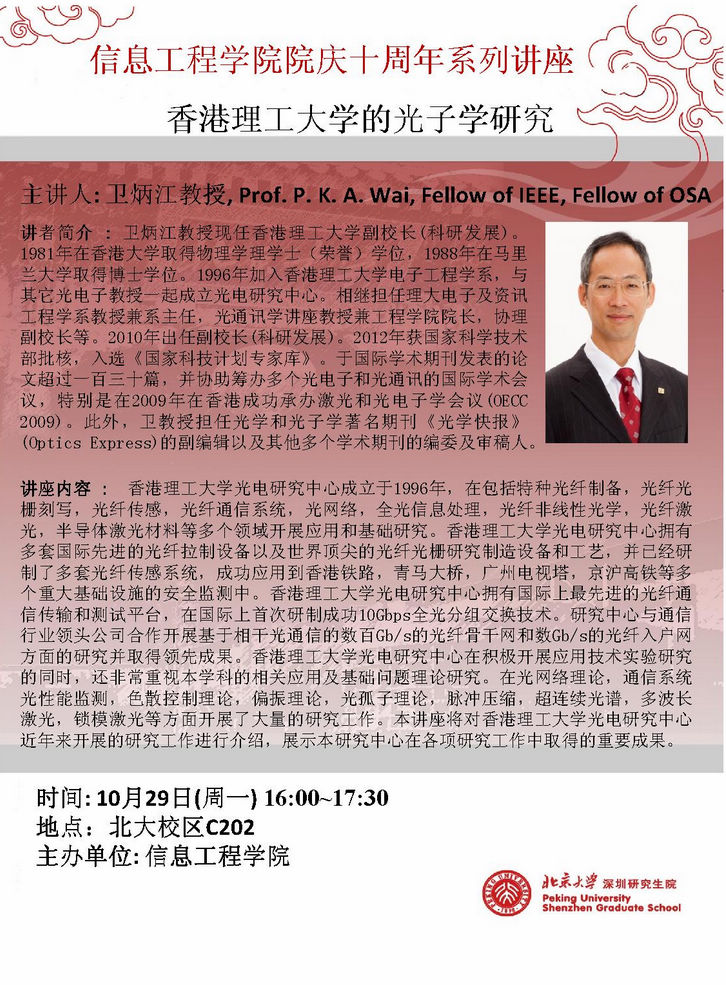 【pc28开奖预测 院庆十周年系列讲座】Prof.P.K.A.Wai:香港理工大学的光子学研究