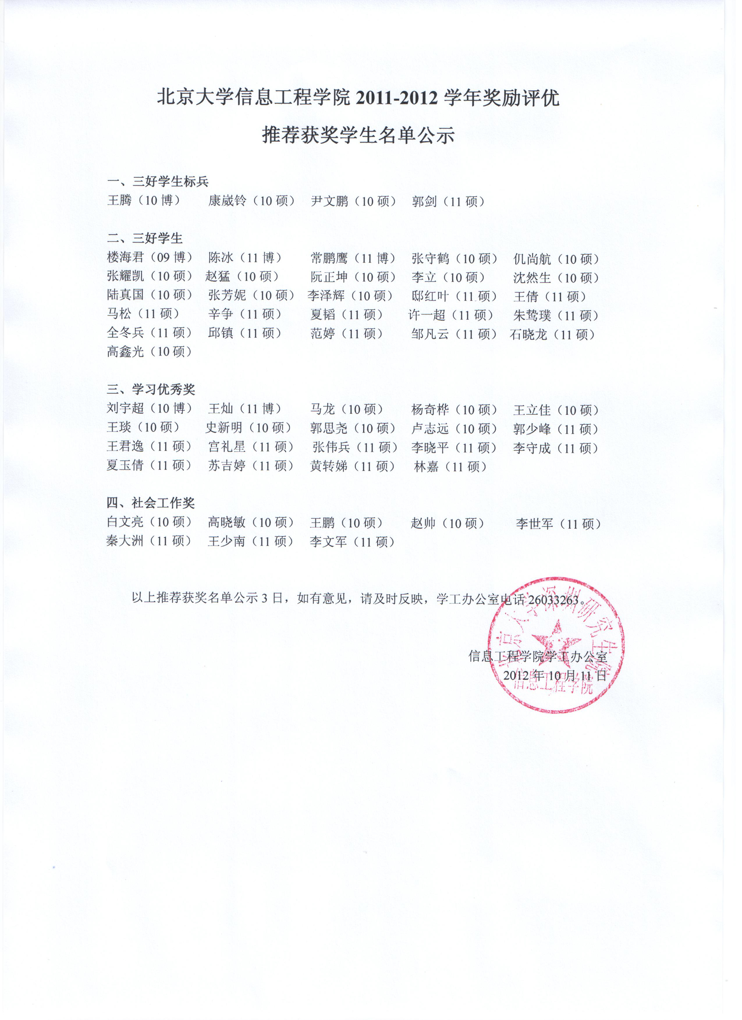 pc28开奖预测 2011-2012学年奖励评优推荐获奖学生名单公示