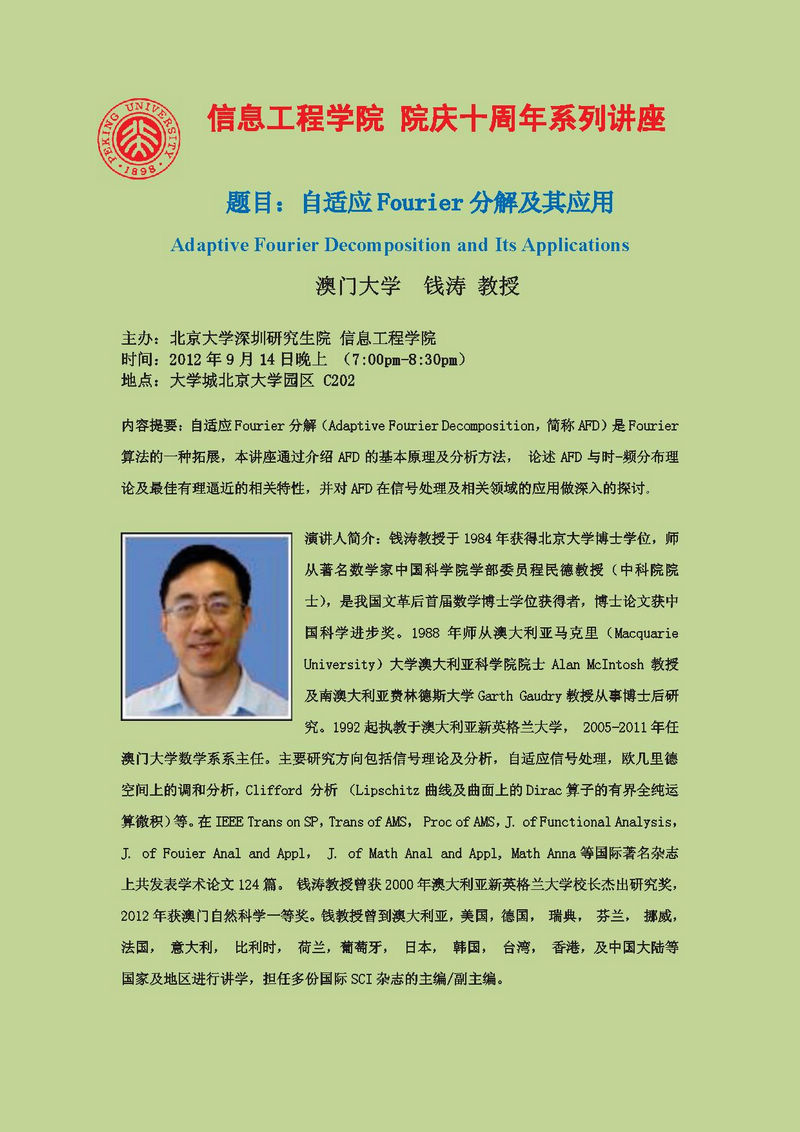 【pc28开奖预测 院庆十周年系列讲座】钱涛教授:自适应Fourier分解及其应用