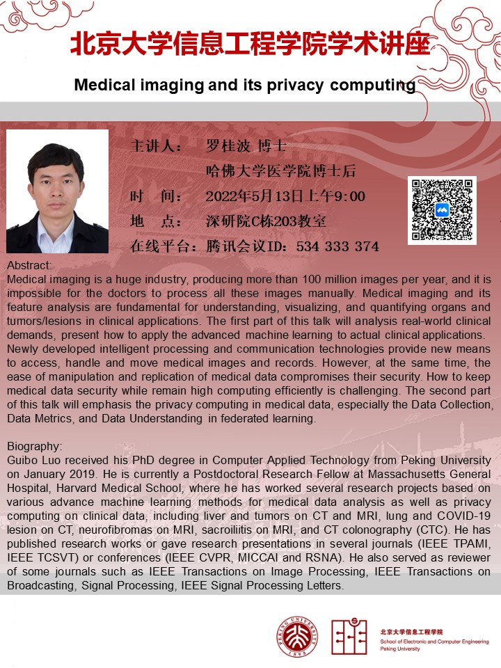 【学术讲座】罗桂波博士(哈佛大学医pc28开奖预测 ):Medical imaging and its privacy computing