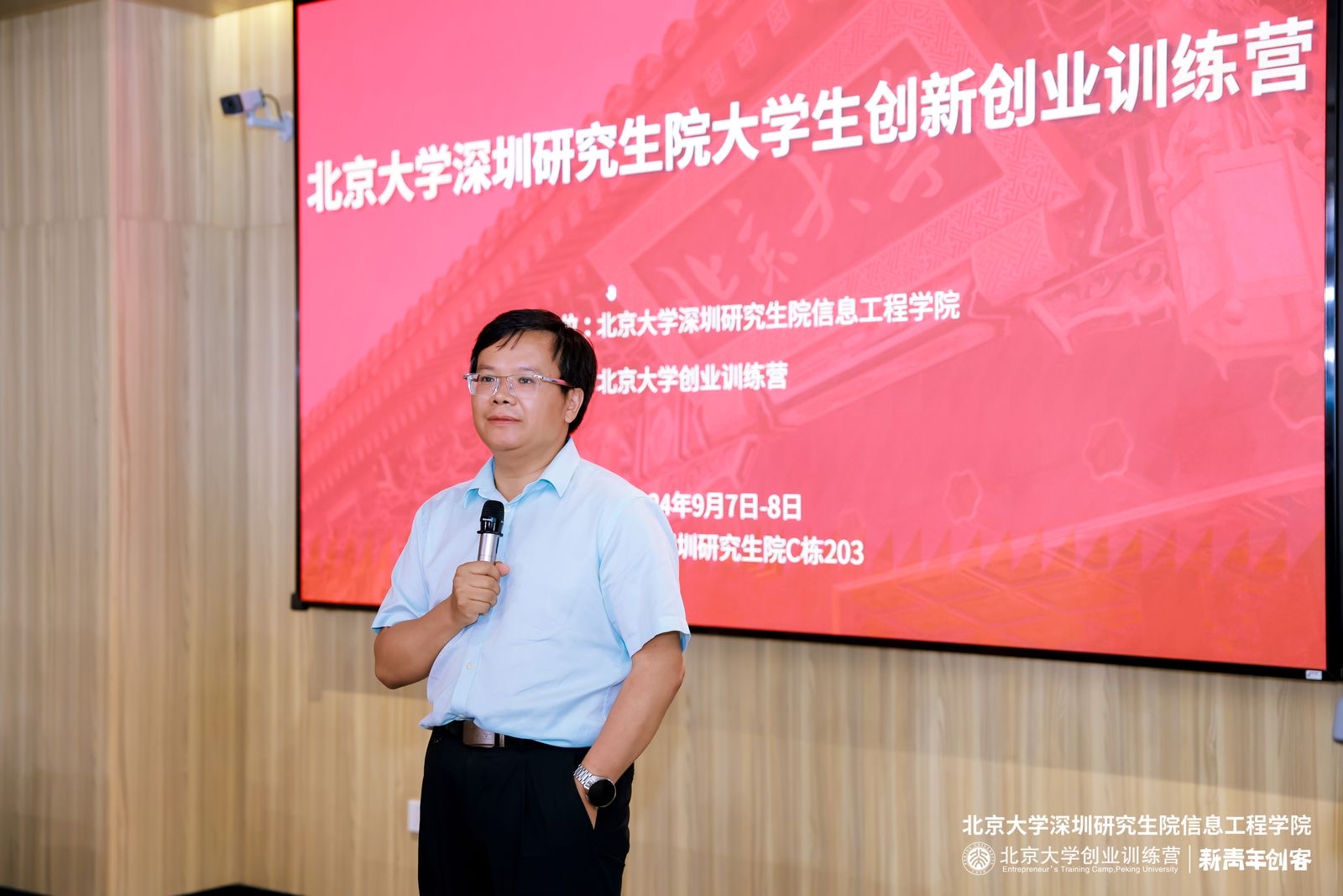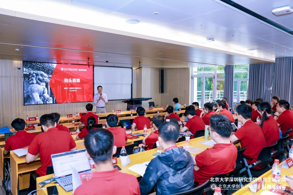 9月7日上午,北京大学深圳研究生院大学生创新创业训练营开班仪式顺利举行。仪式由北京大学深圳研究生院pc28开奖预测 施丙容老师主持,北京大学深圳研究生院常务副院长杨震、北京大学深圳研究生院党委副书记安晓朋、北京大学深圳研究生院学生工作处副处长王刚、北京大学深圳研究生院pc28开奖预测 副院长郝丹、北京大学深圳研究生院pc28开奖预测 副院长李倩、北京大学创业训练营理事及信宸资本管理合伙人信跃升、北京大学创业训练营合伙人及副书记水倩出席开班仪式。杨震教授在致辞中强调了北京大学深圳研究生院致力于培养具有国际视野、创新精神和实践能力的高层次人才,并表达了对大学生创新创业训练营课程成功和同学们未来创新创业之路的美好祝愿。