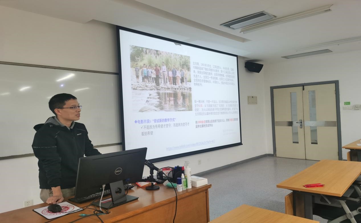 接下来,信息教工党支部宣传委员廖聪维老师分享了影片《一生只为一事来》,影片根据“感动中国2016年度人物”支月英老师的真实故事改编,讲述了支月英老师怀揣支教理想,用自己的行动改善乡村教育环境,帮助孩子们改变自己命运的感人故事。廖老师认为这部影片向社会展现了教师淡泊名利,甘于奉献的形象,在激励更多优秀青年投身教师行业的同时,也引发了人们对乡村教育的思考,是一部值得反复观看的电影。